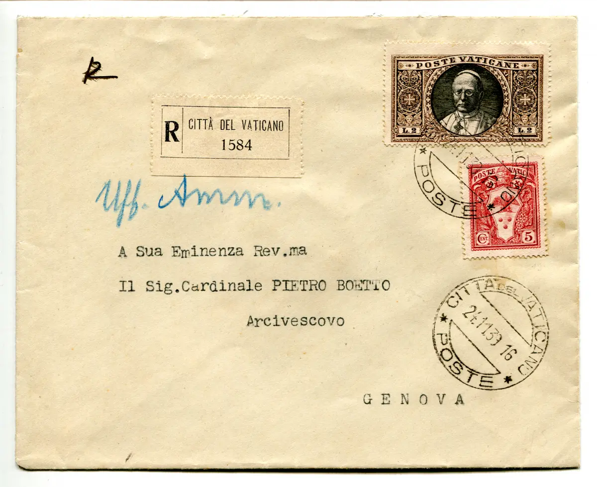 Gärten und Medaillons Lire 2 Nr. 30 + Ergänzung Nr. 19 auf Umschlag Racc. nach Genua am 24.11.39 - im Tarif - Kat. euro 180 Cod. 843/16