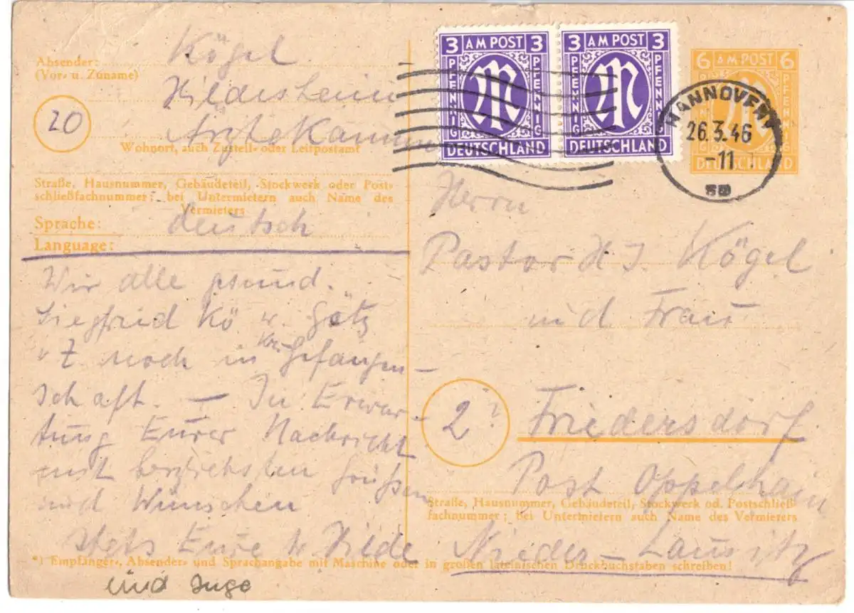 Empfänger: Friedersdorf NiederlausitzPorto: 0,12 Nebenstempel: keine Im Inland erfolgt die Zusendung versandkostenfrei als Briefsendung der Deutschen Post AG oder eines privaten Postanbieters. Auslandsversand