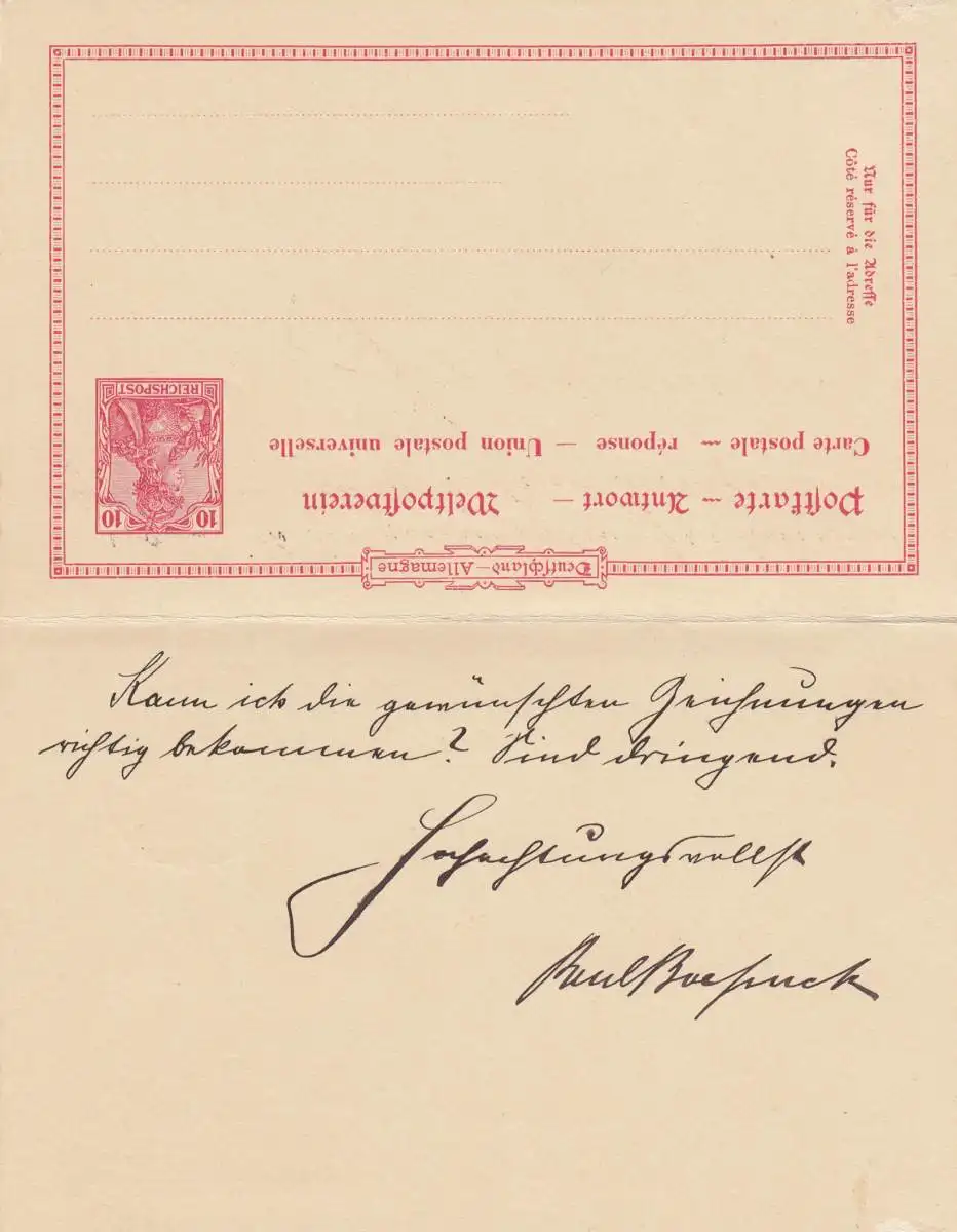 Ganzsache Chemnitz 1902 nach Dresden mit unbenutzter Antwortkarte