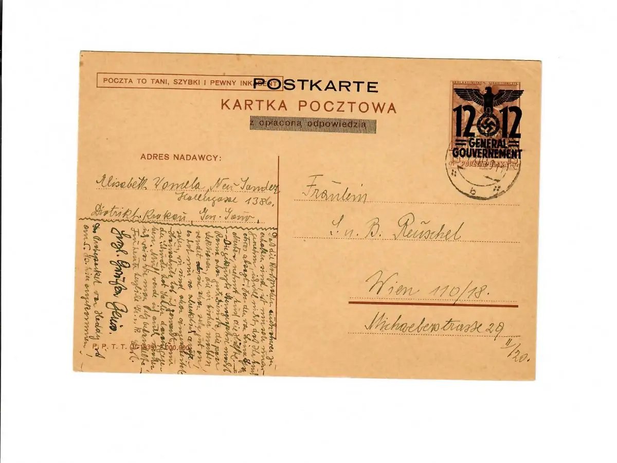 Ganzsache GG P 7F, 04: 10.12.40 Neu Sandez nach Wien