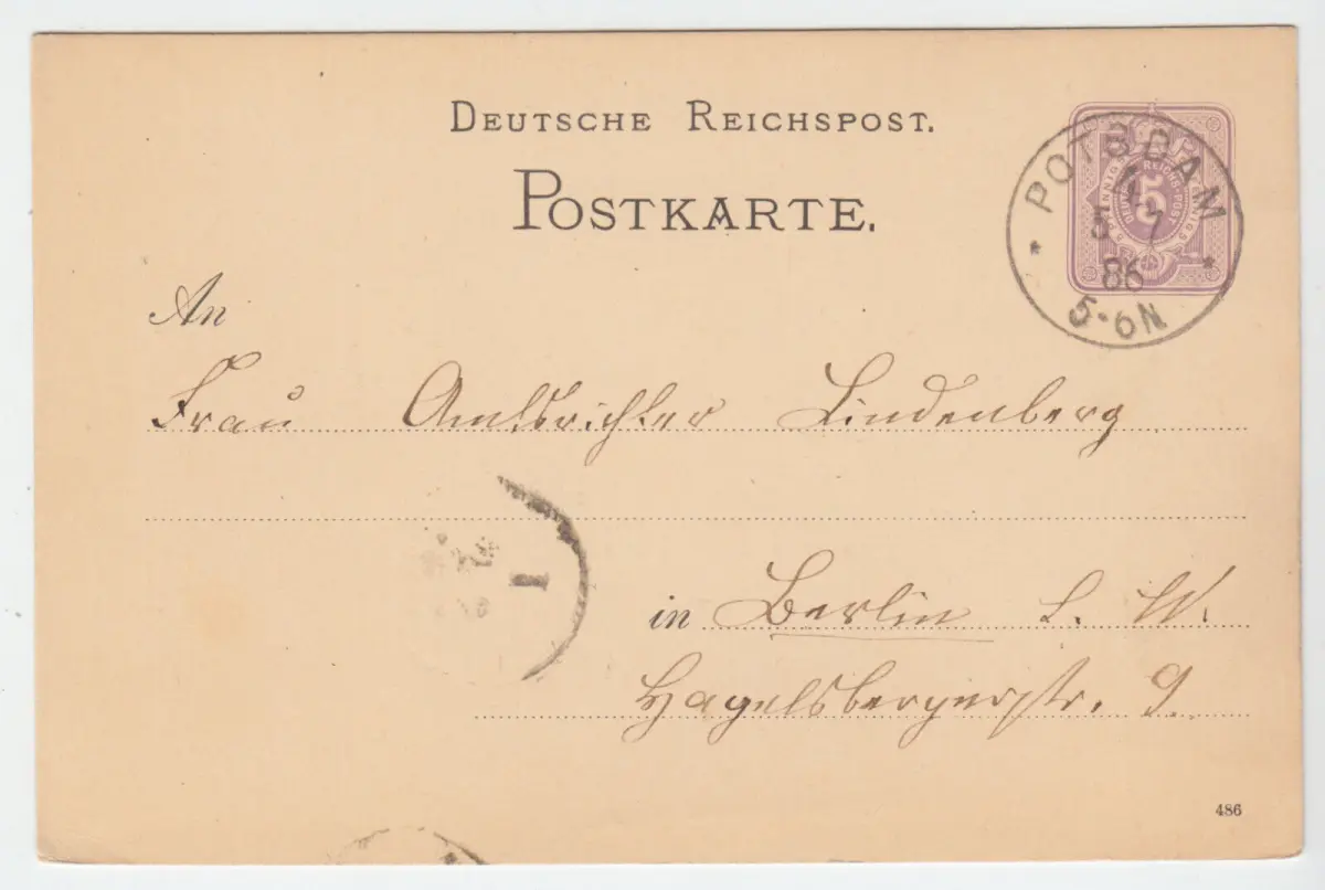 Ganzsache, Michel-Nr. DR P12 Absender: unbenannt Empfänger: Privatperson in BerlinPorto: 005 Nebenstempel: Ankunftstempel Der