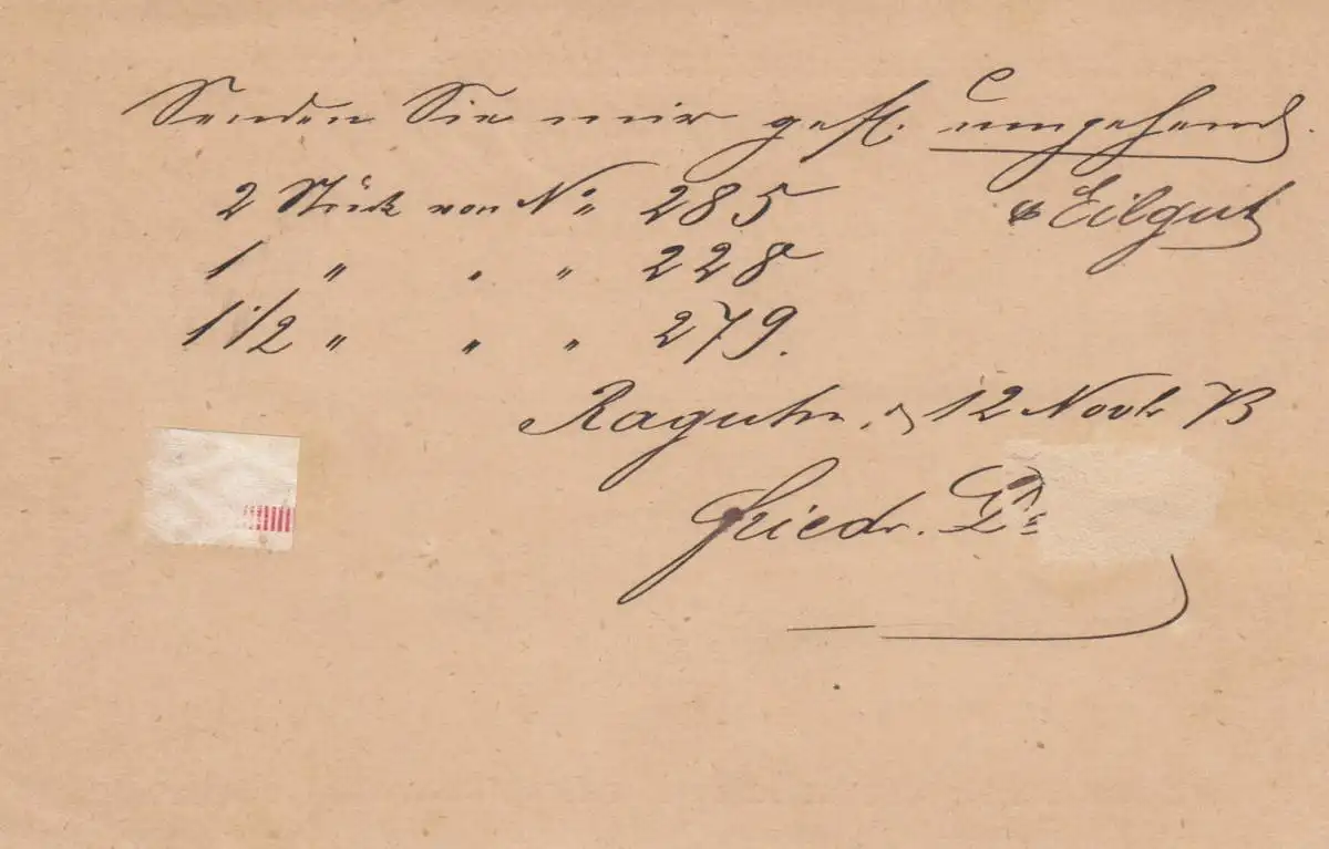 Teilweise wurden vom Scanner ca. 2mm vom Bildrand abgeschnitten. Der Beleg und Briefmarke (n) sind vollständig erhalten.