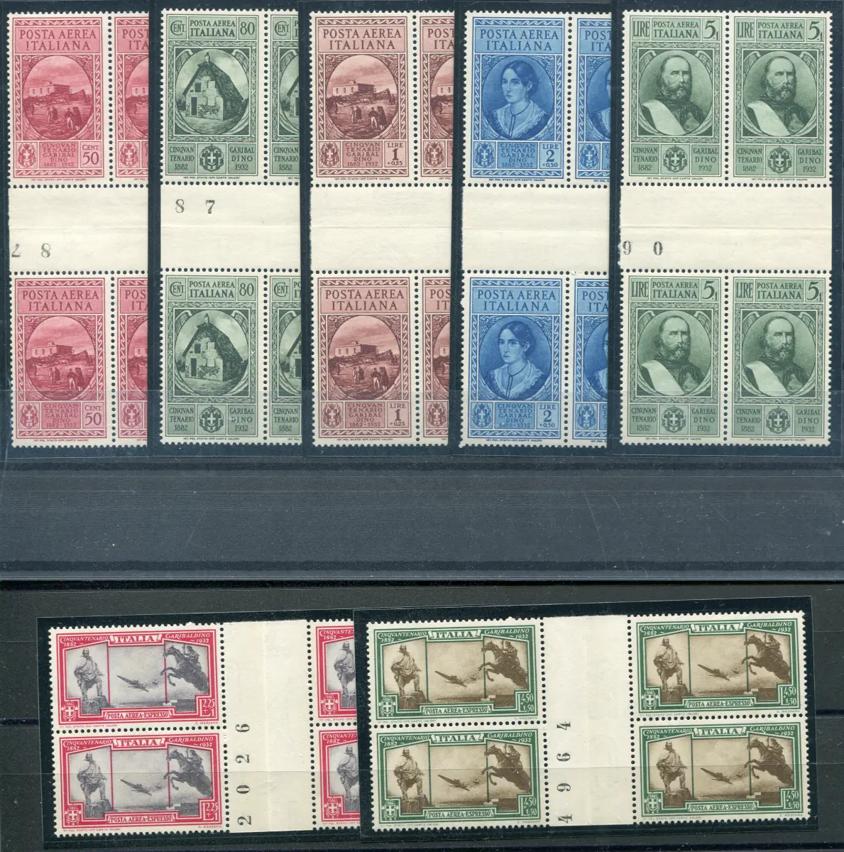 Garibaldi P.A. Serie von sieben Viertelwerten mit Vollgummi-Zwischenraum MNH - Garibaldi P.A. n. 32/38 die komplette Serie von sieben Werten in wunderschönen Vierteln getrennt in der Mitte durch Gruppenzwischenraum - Seltenes Set Cod. 36/12