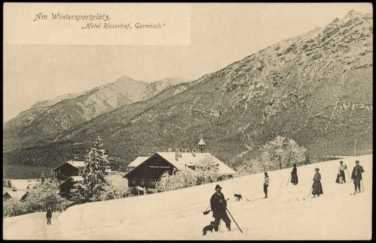 Garmisch-Partenkirchen Am Wintersportplatz. Hotel Risserhof Winter 1907