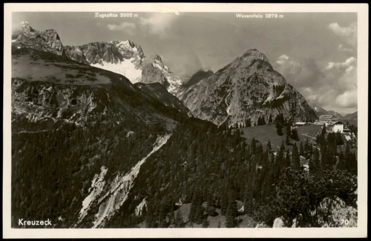 Garmisch-Partenkirchen Kreuzeck Wettersteingebirge - Fotokarte Zugspitze 1937