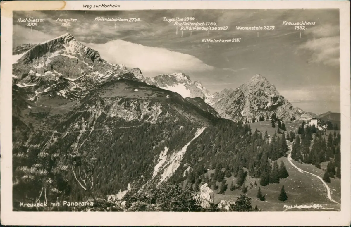 Garmisch-Partenkirchen Kreuzeck (Wettersteingebirge) Panorama Alpen Blick 1940