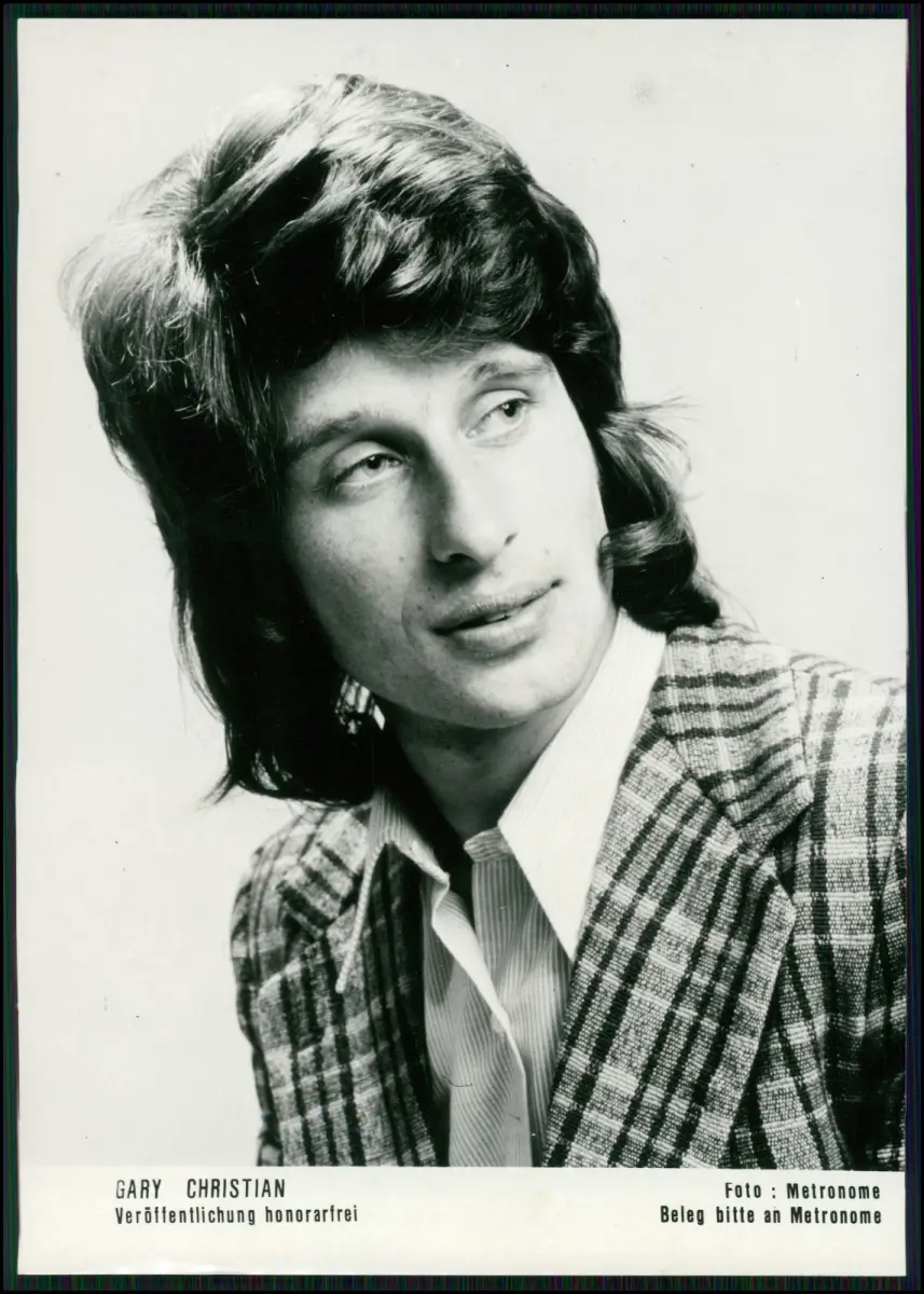 Gary Christian war in dieser Zeit als Pop- und Soulsänger aktiv und veröffentlichte mehrere Produktionen im europäischen Musikmarkt. Seine Karriere war geprägt von einem eleganten, gefühlvollen Stil, der zwischen Soul, Pop und leichter Rockmusik angesiedelt war – typisch für das Musikprogramm von Metronome in den 1970er Jahren. Das hier gezeigte Originalfoto zeigt ihn im klassischen Studio-Porträt, aufgenommen zur Promotion und Presseveröffentlichung seiner damaligen Musikaufnahmen.