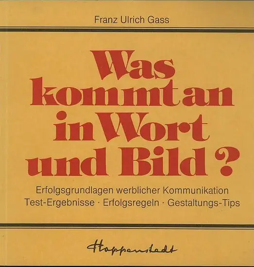 Gass, Franz Ulrich: Was kommt an in Wort und Bild ? Erfolgs-Grundlagen werblicher Kommunikation. Ihre Anwendung in der Praxis. Test-Ergebnisse - Erfolgsregeln - Gestaltungs-Tips.