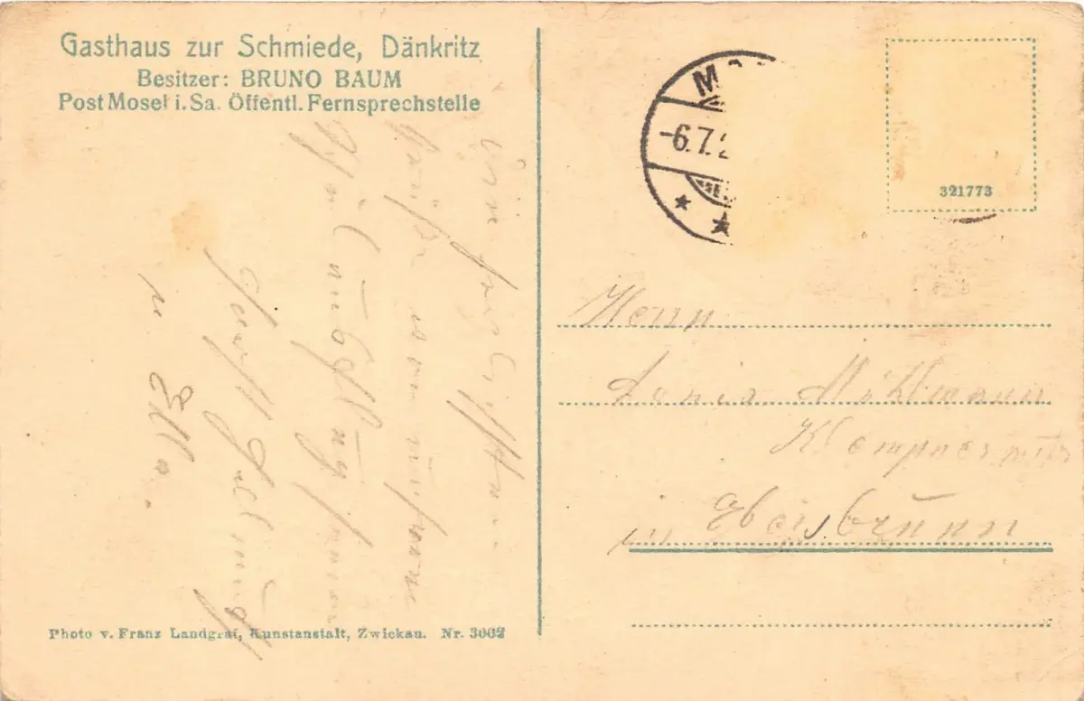 Gasthaus zur Schmiede, Dänkritz Landkreis Zwickau Postkarte 1925