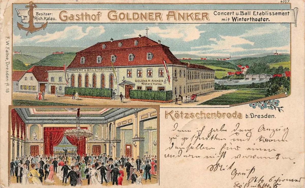 Gasthof Goldner Anker Kötzschenbroda bei Dresden Sachsen Litho Postkarte AK 1906