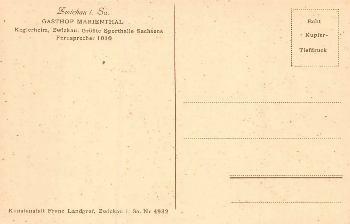 Gasthof Marienthal Ballsaal Zwickau Sachsen Postkarte AK