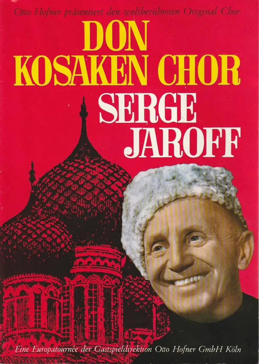 Gastspieldirektion Otto Hofner Köln: Programmheft ORIGINAL DON KOSAKEN CHOR SERGE JAROFF 9. März 1968 Berliner Sportpalast Konzert-Tournee 1967 / 68.