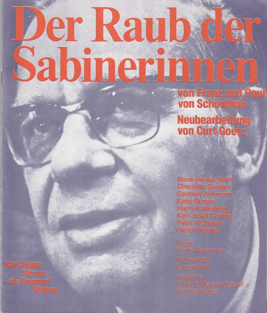 Von Franz und Paul von Schönthan. Inszenierung: Kraft-Alexander. Bühne: Eugen Goll. Kostüme: Elfriede Meyer-Michael / Karl Banholzer. Mitwirkende: Harry Kalenberg, Charlotte Sender, Carmen Zellmann, Dieter Mainka, Katja Burow, Peter W. Staub, Karl Josef Cramer, Karl-Heinz Stroux, Rose Renee Roth - Theaterprogramm, Opernprogramm, Ballettprogramm, Musicalprogramm, Konzertprogramm, Theatermemorabilia, Programmhefte Sammlung, deutsche Theatergeschichte.