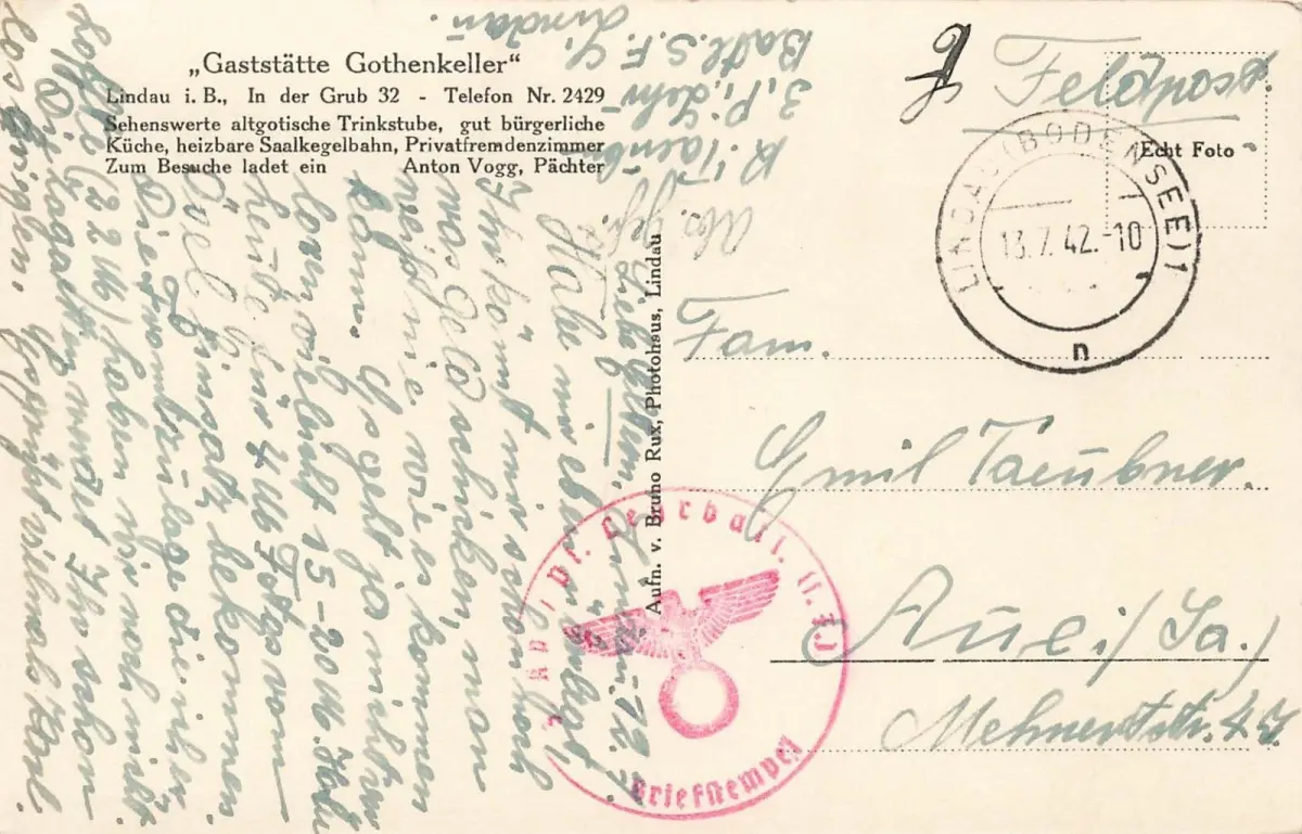 Gaststätte Gothenkeller in Lindau Bayern Postkarte AK 1942