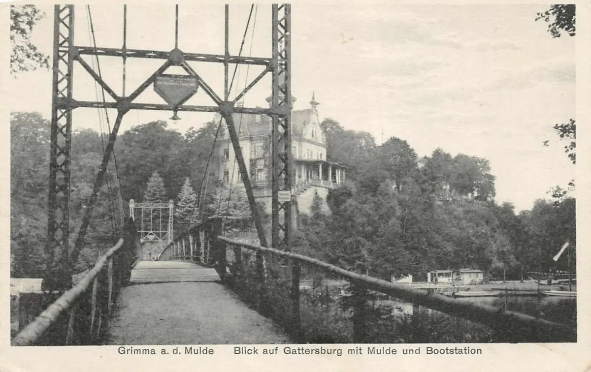 Gattersburg mit Bootstation an der Mulde Grimma Sachsen Postkarte AK 1943