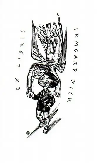 Gaudaeu, G. (?): Ex Libris von Irmgard Dick. "Schutz-Engel".