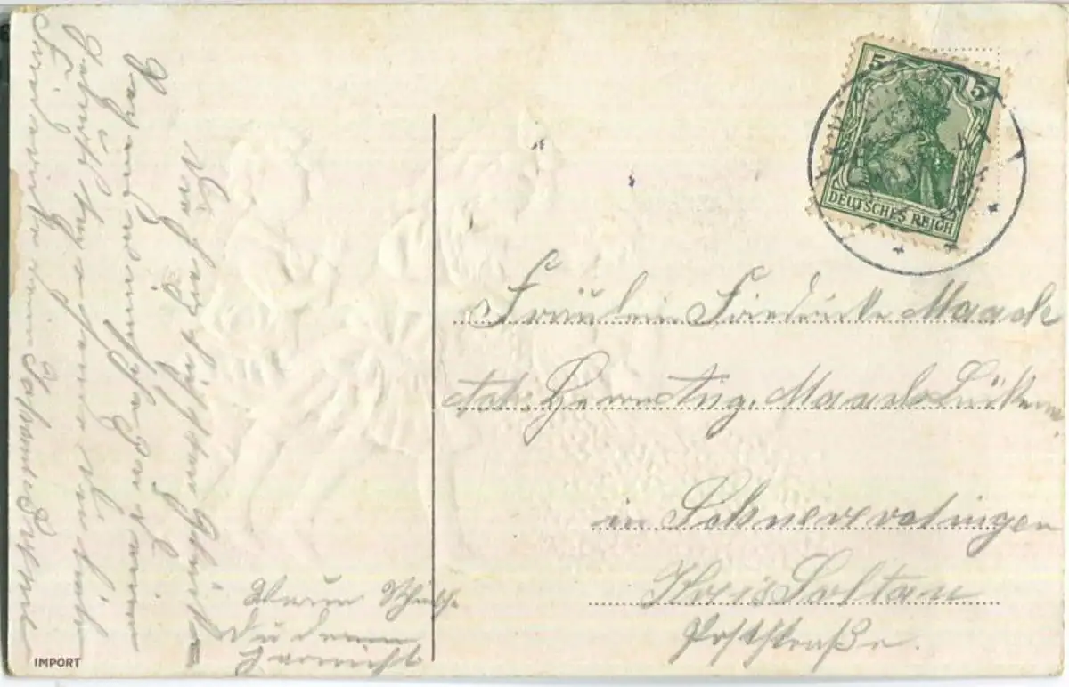 Geburtstag - Mädchen - Blumenwagen - Prägedruck - leicht fleckig Mitte rechts (G16633) gel. 1909