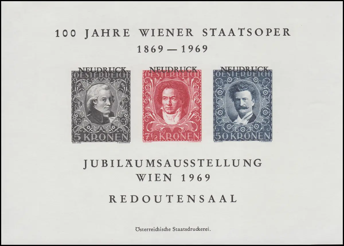 Gedenkblatt 100 Jahre Wiener Staatsoper 1869-1969, Neudrucke 419, 420, 423
