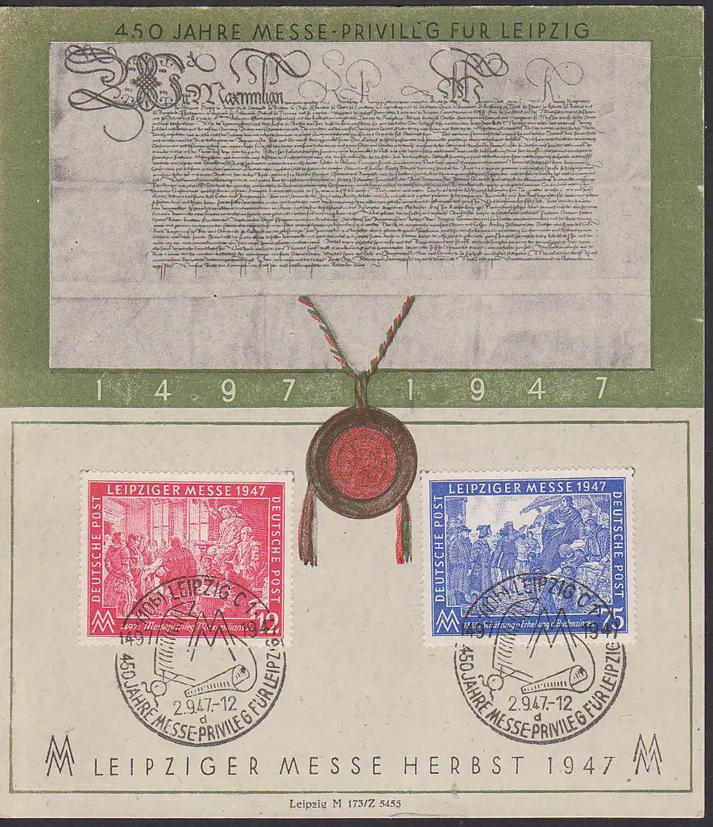 Gedenkblatt 1497 - 1947 450 Jahre Messeprivileg vom Ersttag (965/66), Dv mittig
