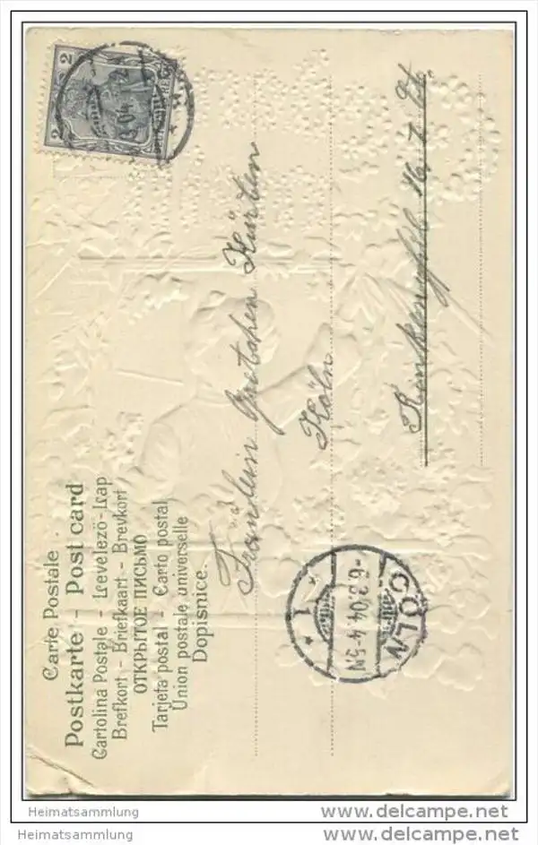 Gedenke mein - Geranium - Vergissmeinnicht - Prägedruck - Eckknick unten rechts (E10854) gel. 1904