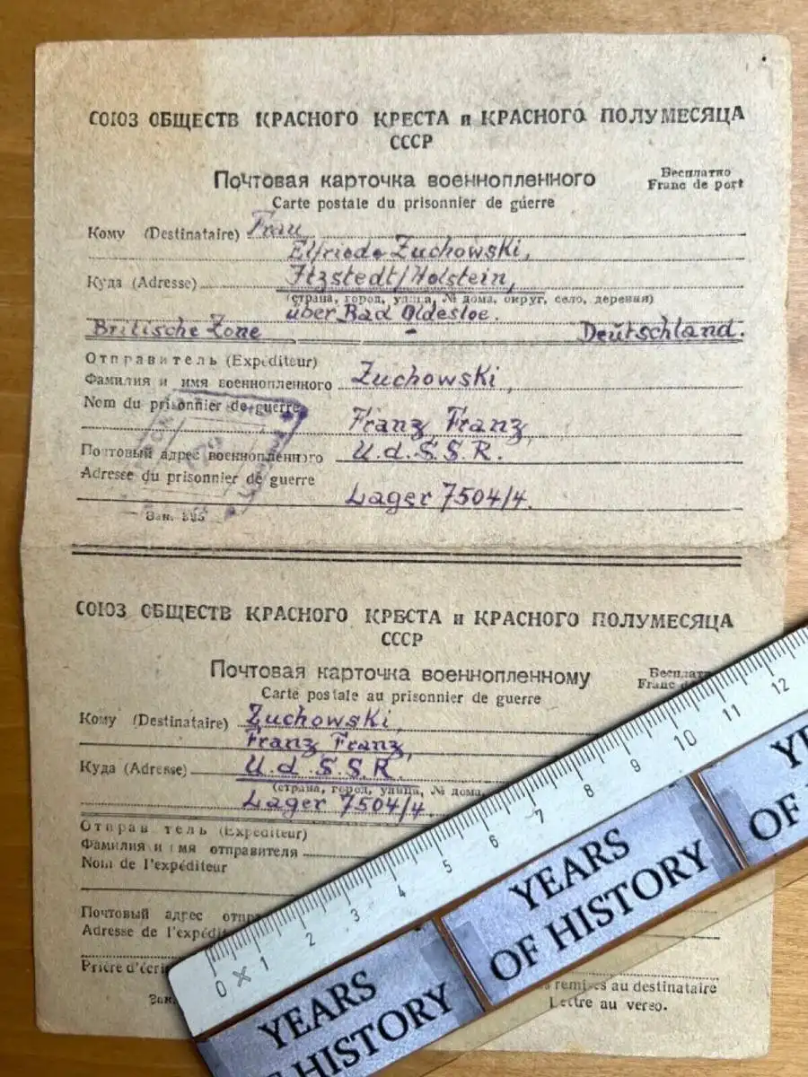 Gefangenenpost DRK Brief POW UDSSR Moskau n. Itzstedt Oldesloe Fam. Zuchowski B9