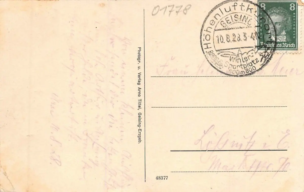 Rückseite: gelaufen 1928 von Geising