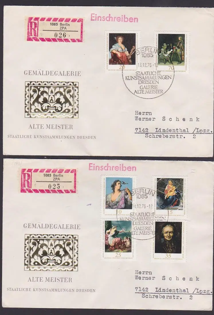 Gemäldegalerie Dresden "Alte Meister" 1976 FDC R-Briefe portogenau Doppelbrief