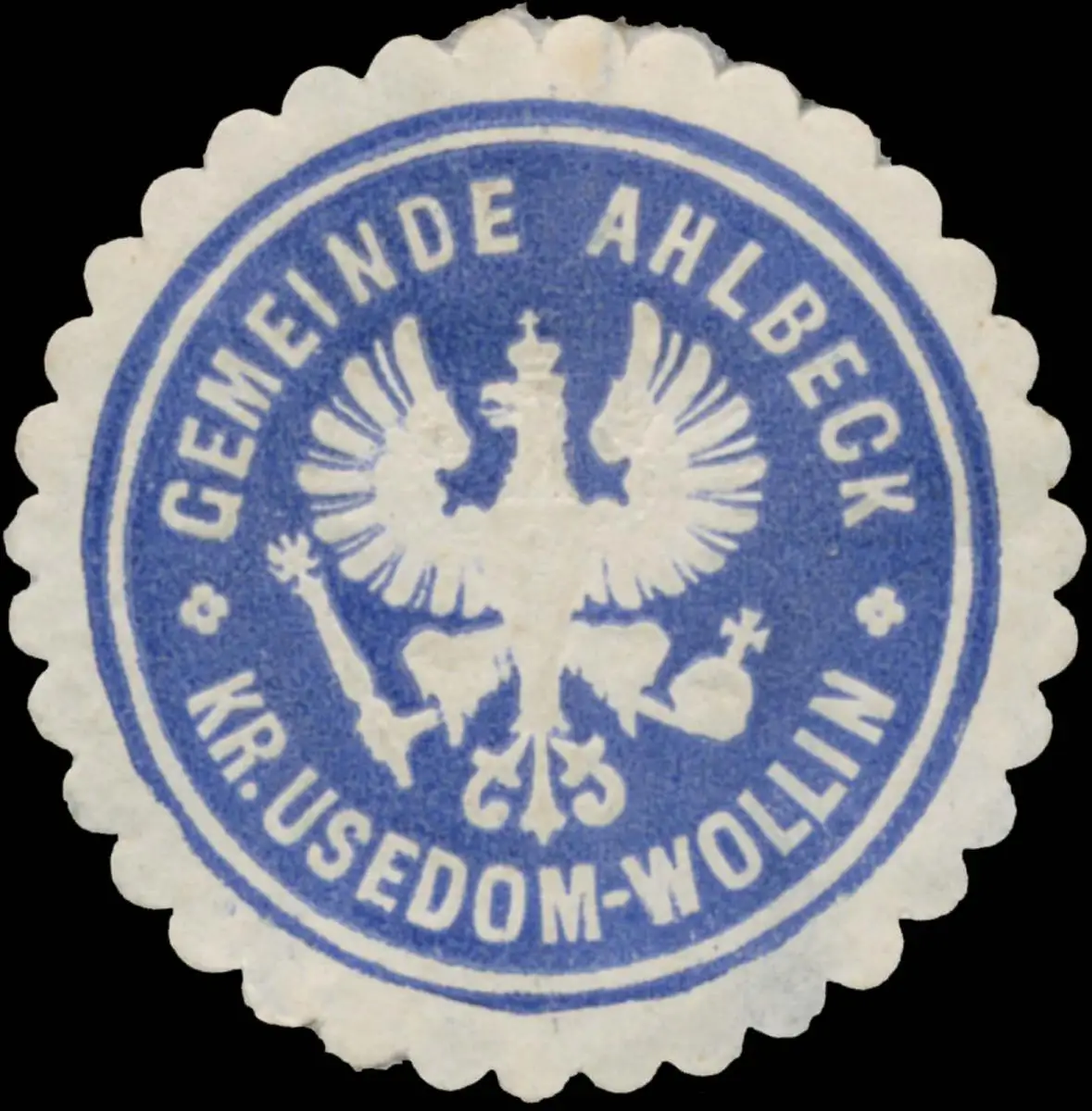 Mecklenburg, blau, weiß, geprägt, Größe/Zustand: 4 , leicht beschädigt, Original Verschluss-Siegelmarke aus Papier welche früher von Behörden, Firmen etc. zum Versiegeln der Briefe benutzt wurden
