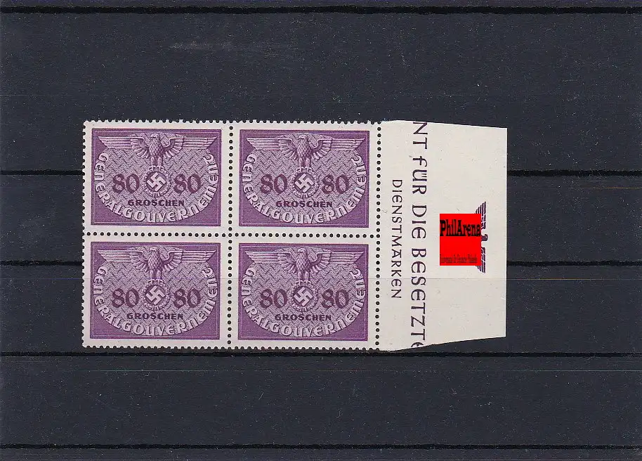 Generalgouvernement (GG) Dienstmarken D12,**, Viererblock Oberrand, selten