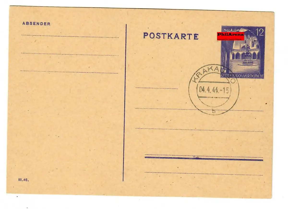 Generalgouvernement GG: Ganzsache P12/02: blanko gestempelt Krakau 20, 4.4.44