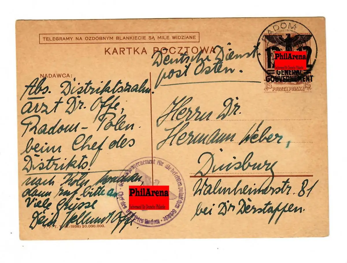 Generalgouvernement GG: Ganzsache P4 Text 10: Radom nach Duisburg, 1940