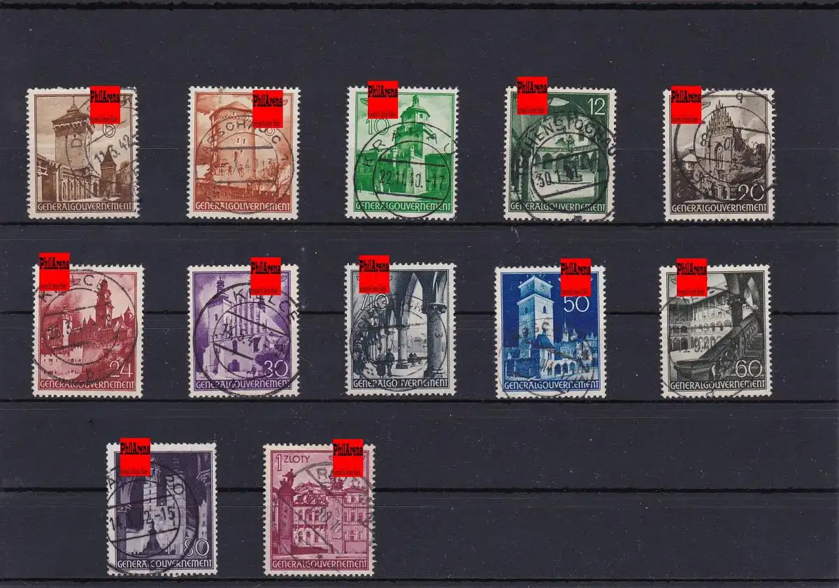 Generalgouvernement (GG) MiNr. 40-51, gestempelt komplett mit schönen lesbaren Rundstempeln.