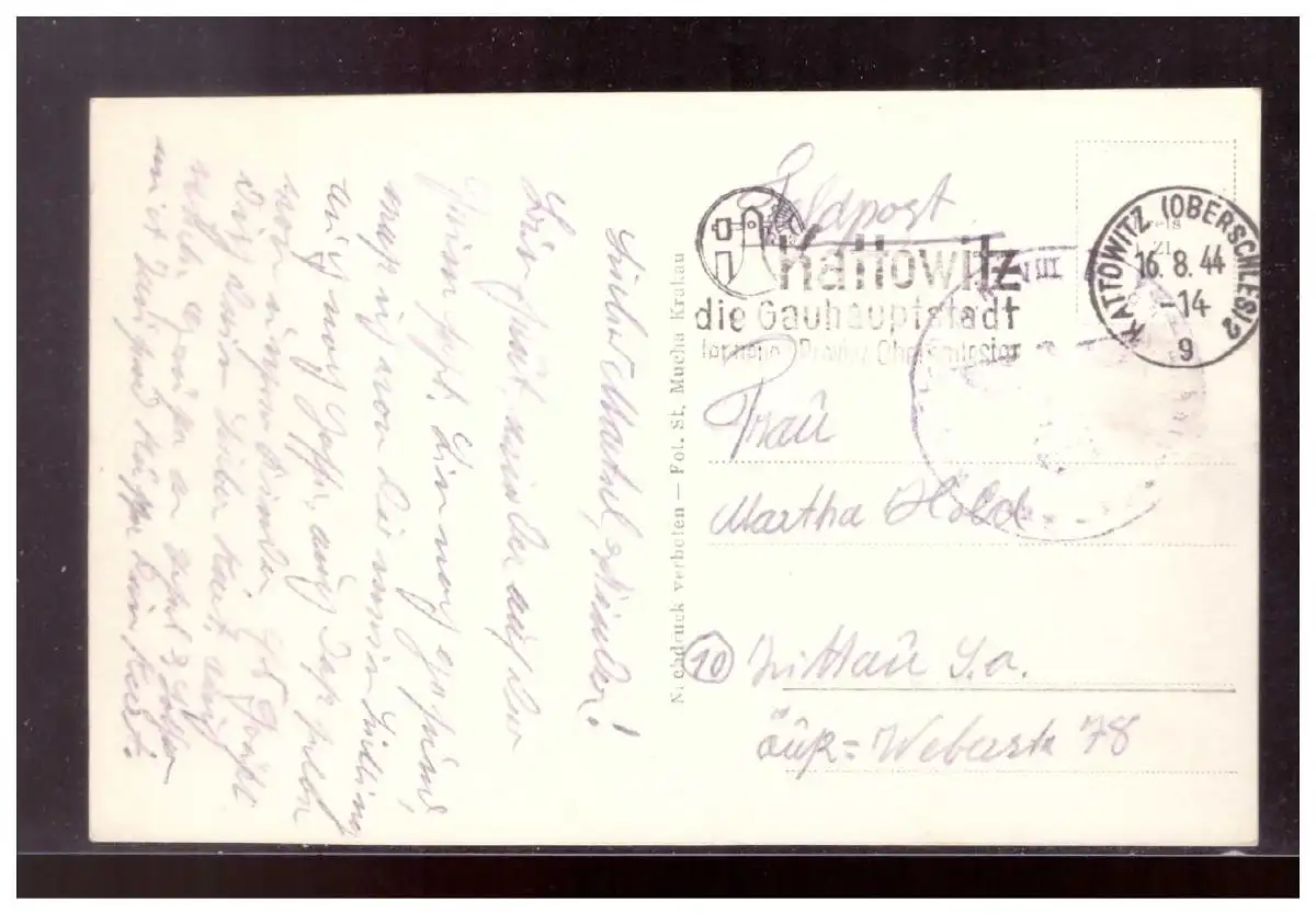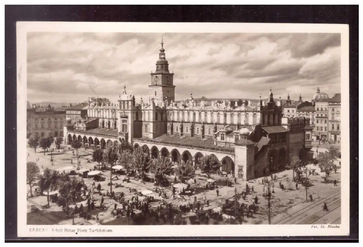 Dt- Reich (021417) WK II Generalgouvernement Krakau- Adolf- Hitler Platz Tuchhallen, gelaufen mit Feldpost 16.8.1944
