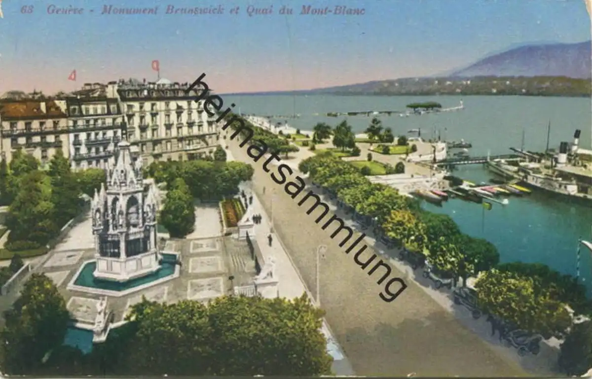 Genf Geneve - Monument Brunswick et Quai du Mont-Blanc - Edition Jaeger Geneve gel. 1924