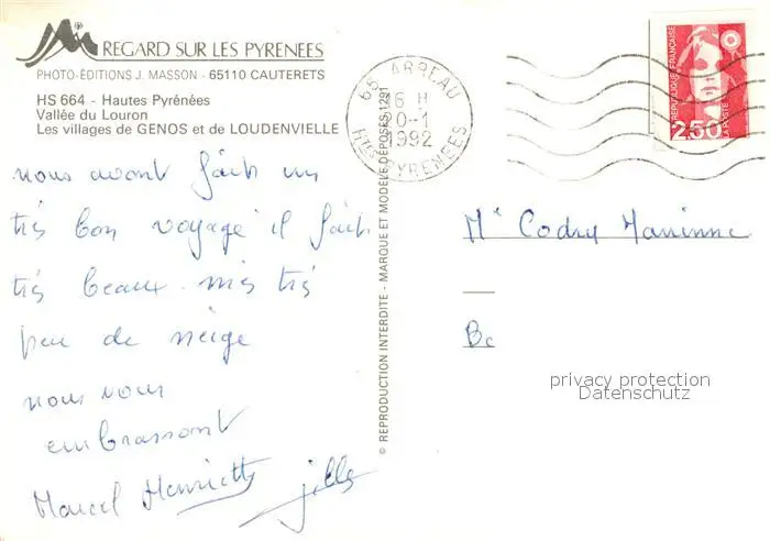 Genos_Hautes-Pyrenees et village de Loudenvielle en hiver Genos Hautes-Pyrenees postalisch gelaufen 1992 Erhaltung siehe scans [FriedD77] Frierer