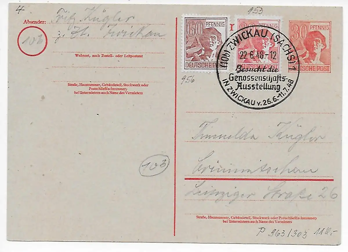 Genossenschafts-Ausstellung Zwickau 1948 - MiNr. P963/303