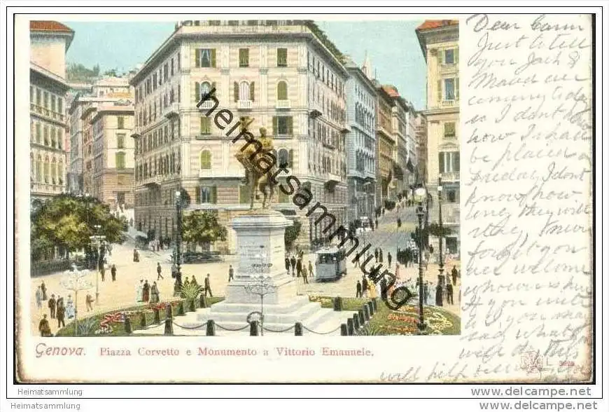 Genova - Piazza Corvetto e Monumento a Vittorio Emanuele (E2426) gel. 1906