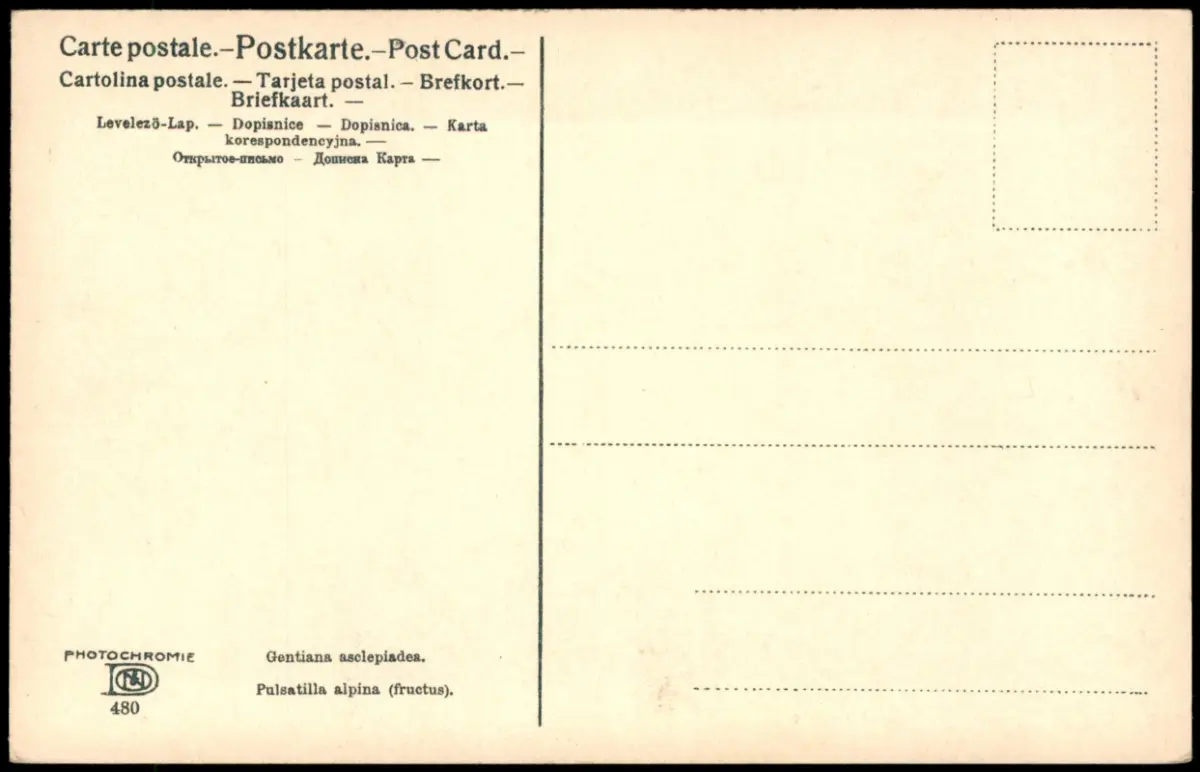 Gentiana asclepiadea.Pulsatilla alpina (fructus). PHOTOCHROMIE Botanik 1912