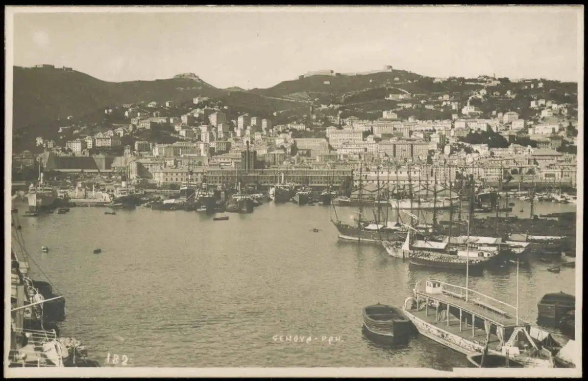 Genua Genova (Zena) Panorama-Ansicht Porto Hafen mit Segelschiffen 1920