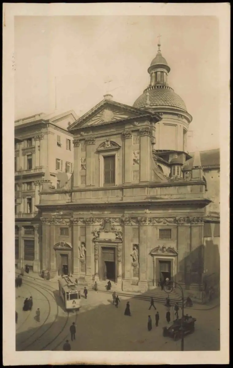 Genua Genova (Zena) Tram Straßenbahn passiert Kirche Chiesa di S. Ambrogio 1920