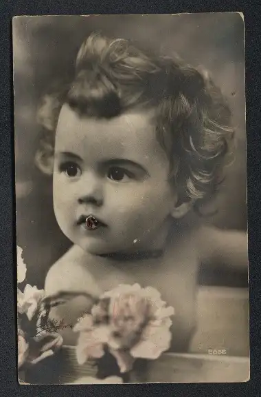 Geräusch-AK Kleines Kind mit lockigem Haar mit aufmerksamem Blick