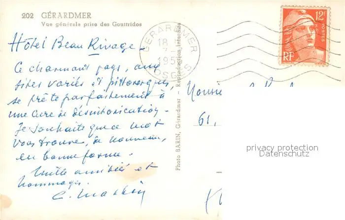 Gerardmer_Vosges Vue générale prise des Gouttridos Gerardmer Vosges postalisch gelaufen 1953 Erhaltung siehe scans [FriedD77] Frierer