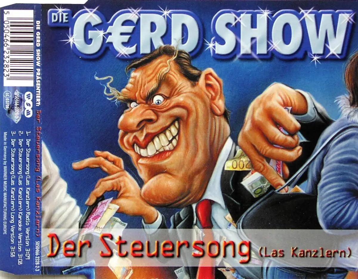 CD Single Die Gerd Show - Der Steuersong, Las Kanzlern; Las Ketchup coverversion, Zustand CD M- Hülle M-; 2002 EMI 5050466-2328-2-3, Tracks Radio Vers. 3:09, Karaoke Vers. 3:08, Long Vers. 3:58