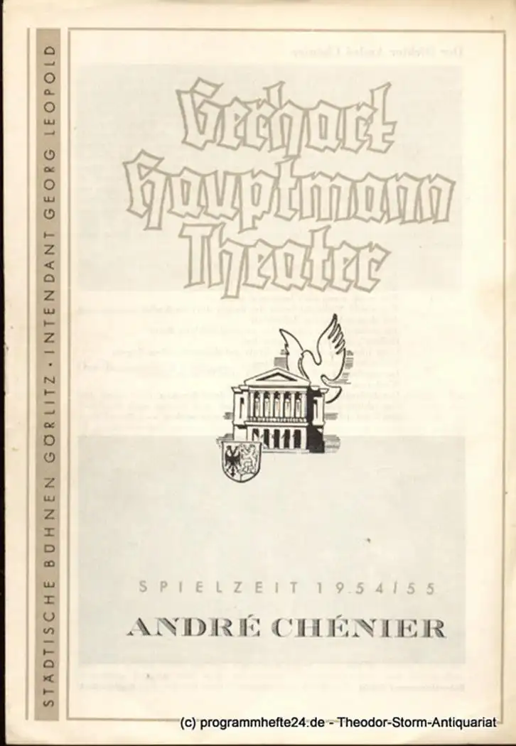 Gerhart Hauptmann Theater Görlitz, Intendant Georg Leopold, Hardtmann Walter: Programmheft Umberto Giordano Andre Chenier Sechste Einstudierung der Spielzeit 1954 / 55.