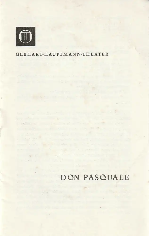 Gerhart-Hauptmann-Theater Görlitz / Zittau, Armin Roder, K. P. Gerhardt, Ingeborg Allihn: Programmheft Gaetano Donizetti DON PASQUALE Premiere 7. Januar 1970.