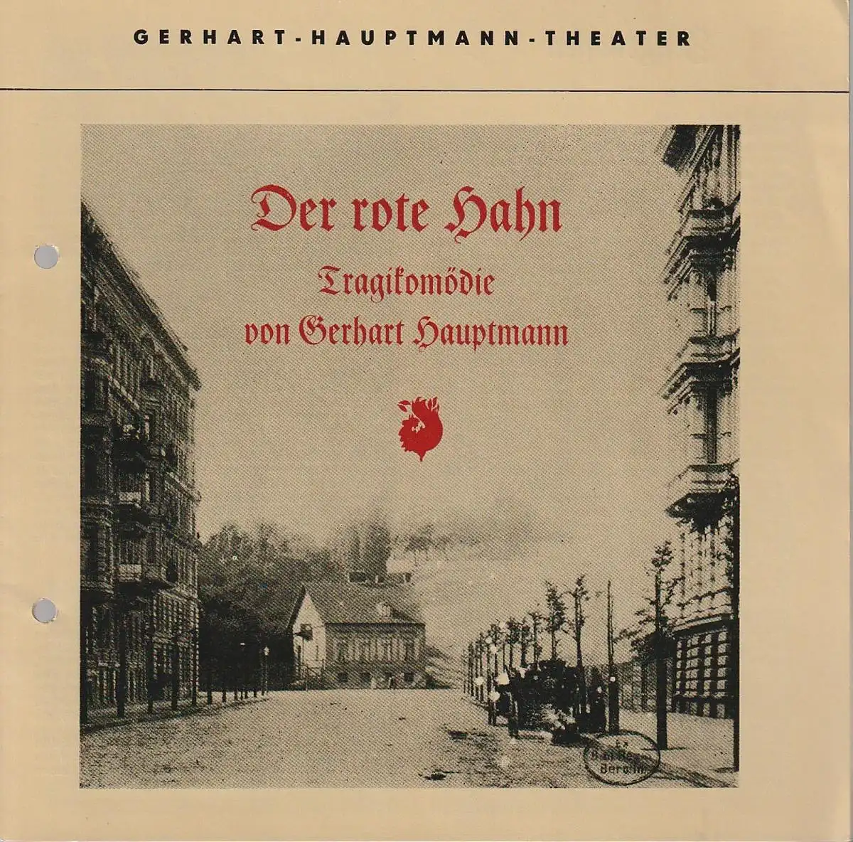 Gerhart-Hauptmann-Theater Görlitz-Zittau, Roman Silberstein, Wolfgang Wessig, Hansjörg Masch: Programmheft Gerhart Hauptmann DER ROTE HAHN Premiere 9. November 1984 Spielzeit 1984 / 85.
