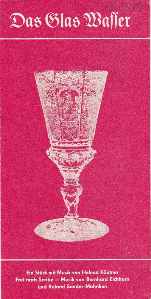Titel: Programmheft Helmut Käutner DAS GLAS WASSER Premiere 15. Dezember 1978 Spielzeit 1978 / 79