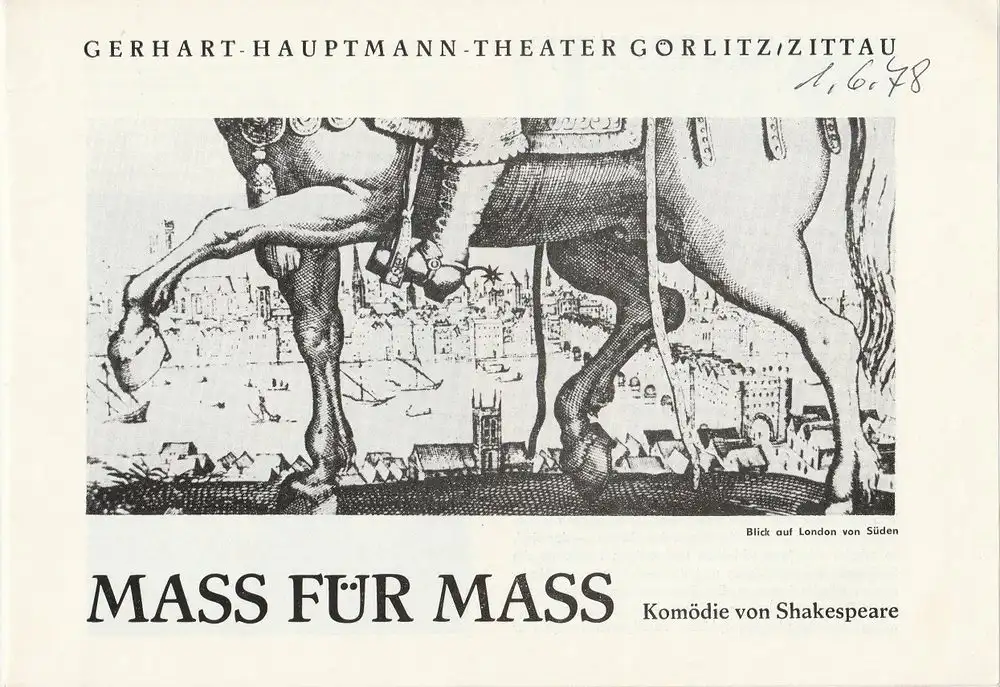 Gerhart-Hauptmann-Theater Görlitz / Zittau, Rudolf Uhlig, Wolfgang Wessig, Renate Kersten: Programmheft William Shakespeare MASS FÜR MASS Premiere 19. Mai 1978 Spielzeit 1977 / 78.