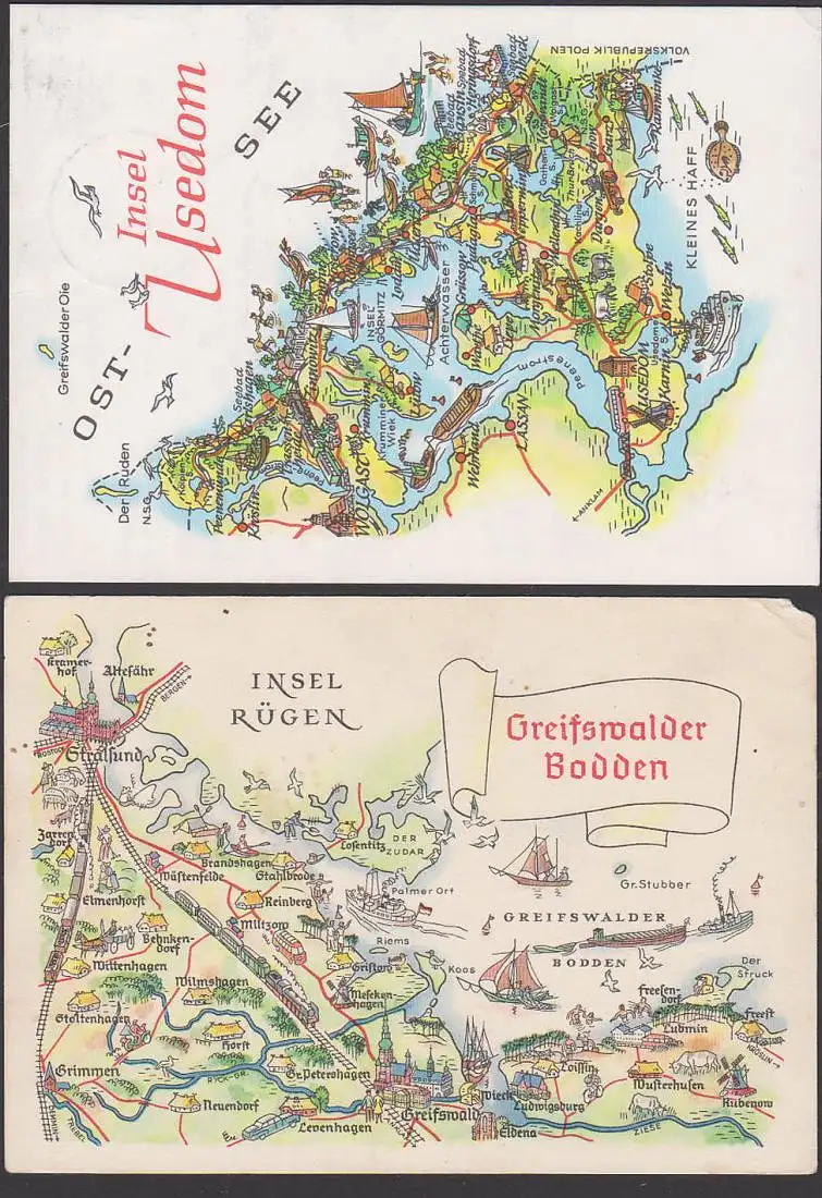 Germany Ostsee Insel Usedom Insel Rügen Greifswalder Bodden 2 Karten von "Bild- und Heimat-Verlag"