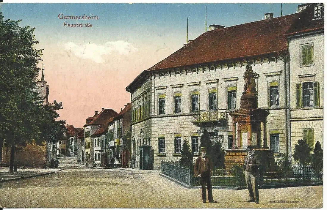 Germersheim, Hauptstrasse m. Personen, 1918 per Feldpost gebr. Farb AK
